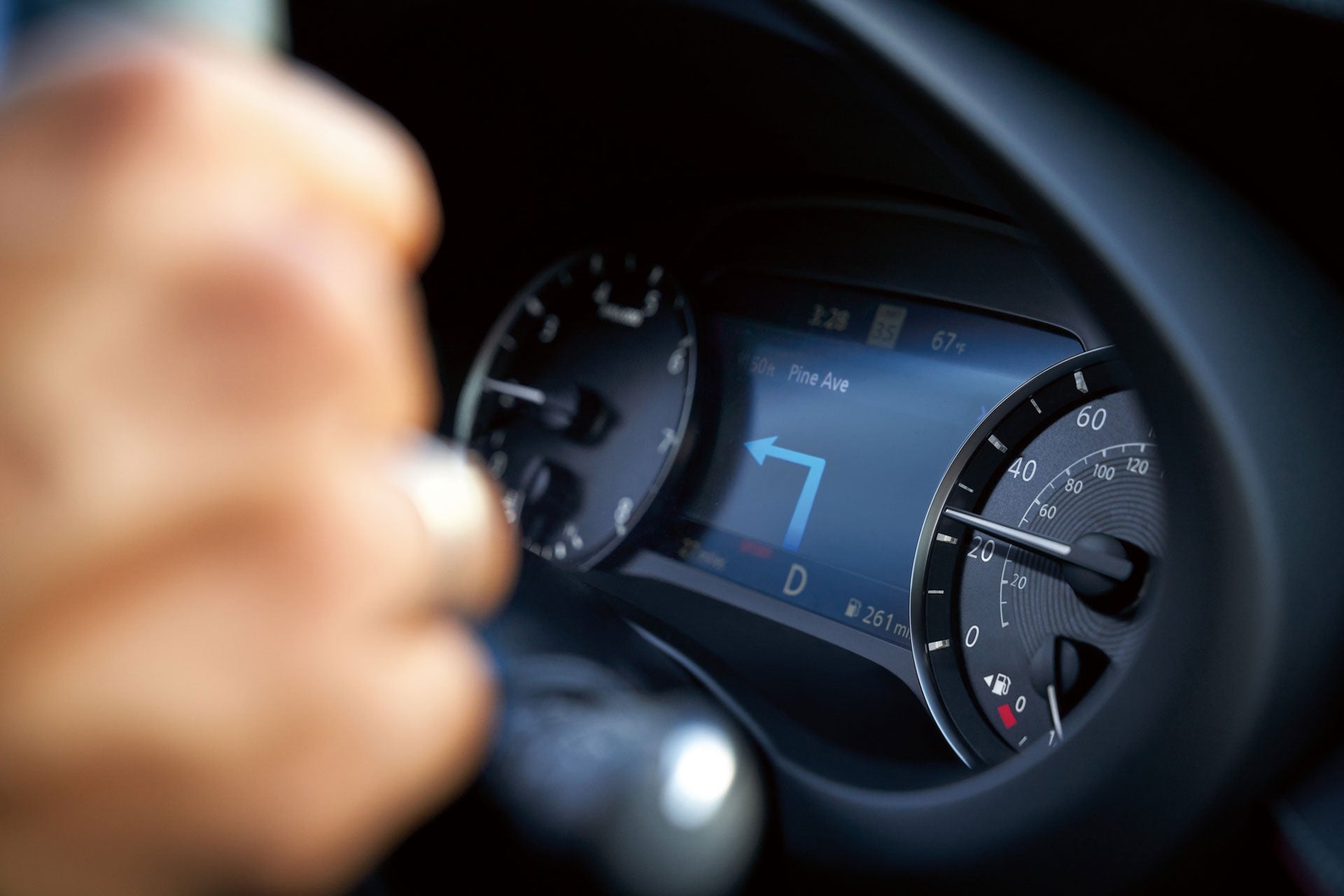 Head-Up Display-Do not use for extended periods of time. See Owner’s Manual for important safety information. (Head-Up Display Image – Information displayed is dependent on how the vehicle is equipped. Do not use for extended periods of time. See Owner’s Manual for important safety.)