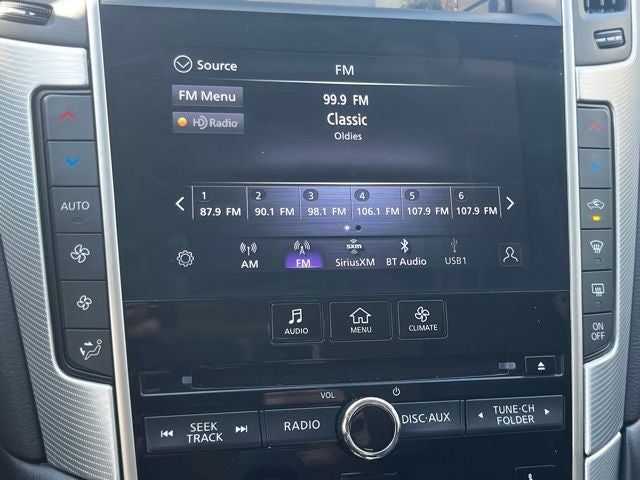 - Radio: INFINITI InTouch Dual HD Display System -inc: 16 speaker Bose Performance Series audio w/Bose Centerpoint simulated surround, wireless Apple CarPlay, Siri Eyes Free, Android Auto, Bluetooth® hands-free phone system w/text messaging assistant, voice recognition for audio, Bluetooth® and vehicle information, streaming audio via Bluetooth®, 2 illuminated USB connection ports (1 type A, 1 type C), auxiliary audio input, HD Radio, SiriusXM radio w/advanced audio features w/3 month complimentary trial and Wi-Fi hotspot